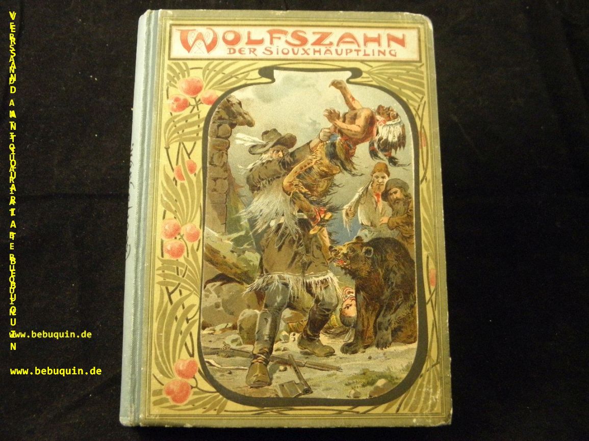 ORTLEB, Alexander: Wolfszahn der Siouxhäuptling. Eine Erzählung aus dem wilden Westen Nordamerikas. Für die reifere Jugend. 3. Aufl. Stuttgart (Loewe), (1901). 104 (von 108) S. mit 3 Farbendruckbildern von W. Zweigle. farb. ill. OHLn. es fehlen die letzten 4 Seiten, sonst gutes Ex. Klotz 5225/15.