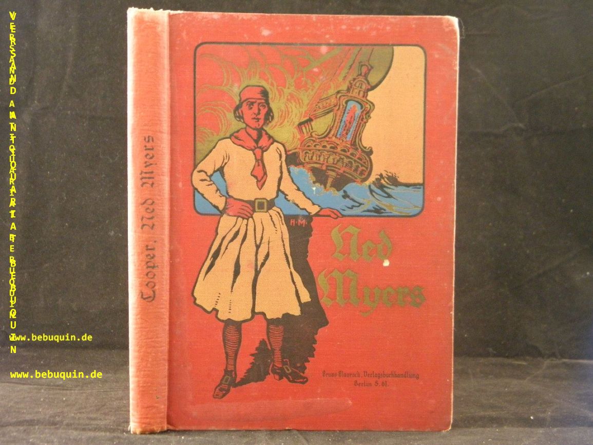 COOPER, James Fenimore: Ned Myers. Eine Seegeschichte für dienreifere Jugend. Bearb. von A. Specht. Berlin (Blaurock), (1911). Gr. 8°. 200 S. mit 6 Vollbildern von hans Mützel. farb. ill. OLn. feines Ex. sehr seltene EA Klotz 6910/1.