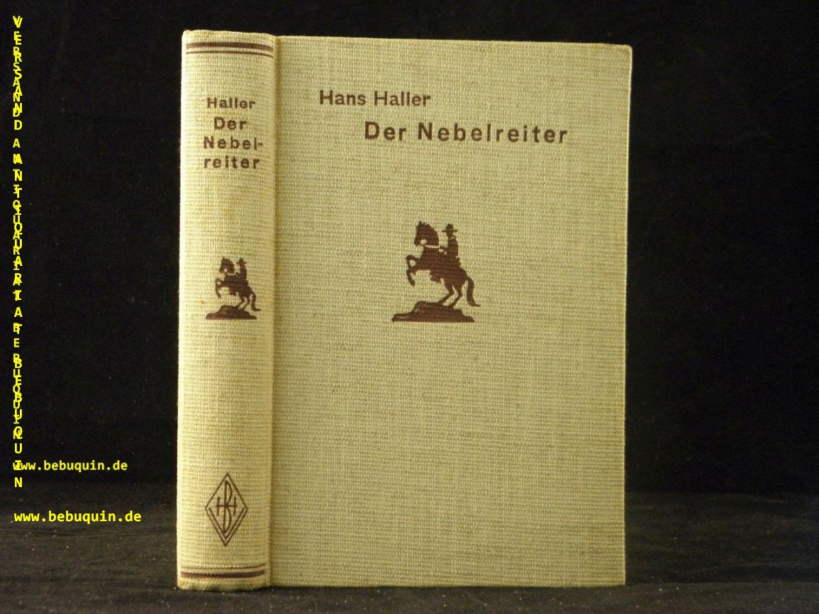HALLER, Hans: Der Nebelreiter. Bremen (Burmester), (1937). 224 S. ill. OLn. kaum gebräunt, gutes Ex. = Burmester’s Abenteuer – Serie. EA. Schegk / Wimmer S5.