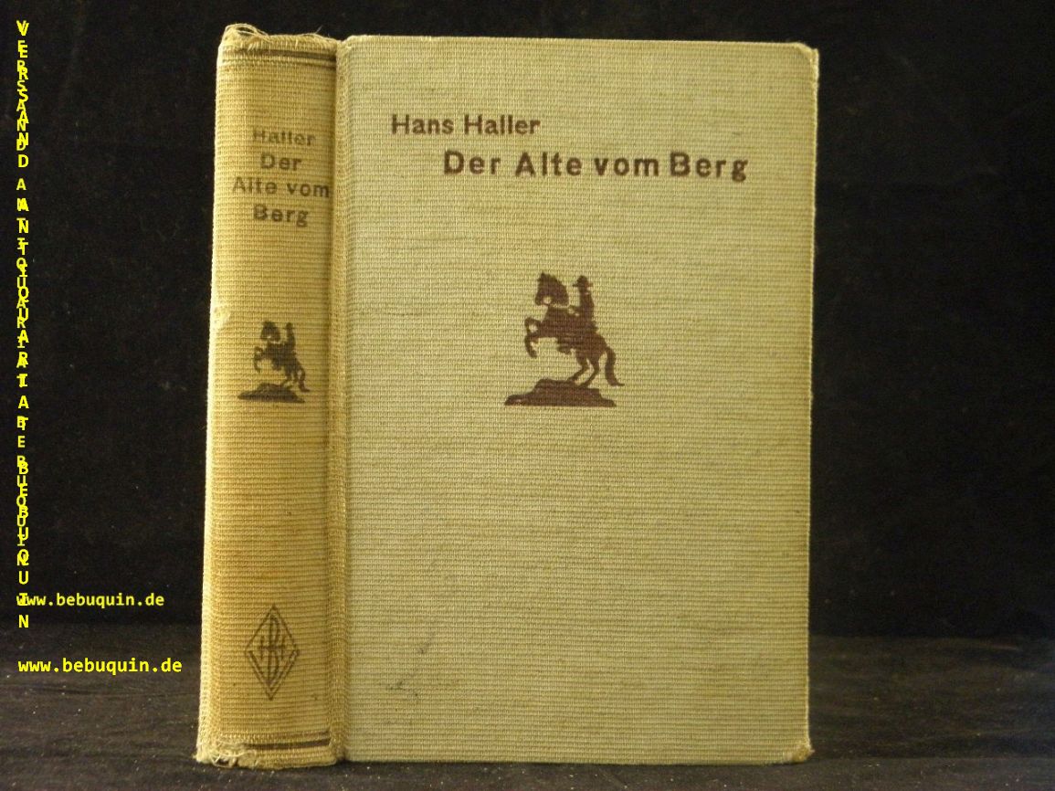 HALLER, Hans: Der Alte vom Berg. Bremen (Burmester), (1938). 256 S. ill. OLn. Einband gebräunt, vorderes Gelenk gelockert, NaV. = Burmester’s Abenteuer – Serie. EA. Schegk / Wimmer S4.