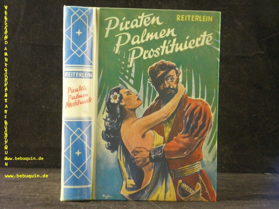 REITERLEIN: Piraten – Palmen – Prostituierte. Piraten-Roman. Kaiserslautern (Schäfer), 1953. 256 S. farb. ill. OHLn. gestempeltes Leihbuch. 1. Aufl. dieser Ausgabe. Indiziertes Leihbuch 1957!