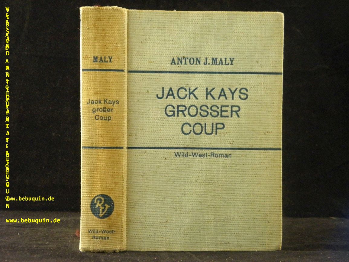 MALY, Anton J.: Jack Kays großer Coup. Wild-West-Roman. Leipzig (Rekord), 1938. 278 (2) S. mit dreiseitigem Grünschnitt. OLn. NaV, feines Ex. seltene EA.