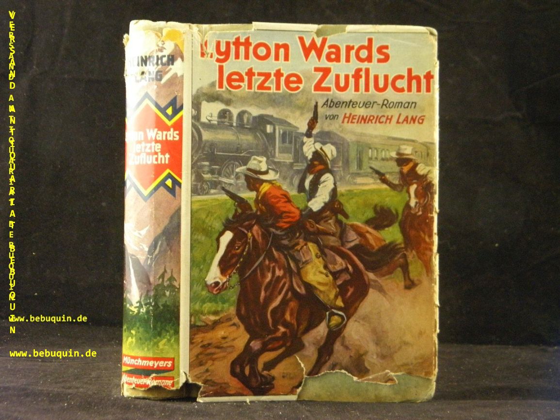 LANG, Heinrich: Lytton Wards letzte Zuflucht. Abenteuer-Roman. Dresden (Münchmeyer), (1937). 294 S. OPb mit OUmschl. Umschlag stärker lädiert, NaV. = Münchmeyers Abenteuerromane. EA.