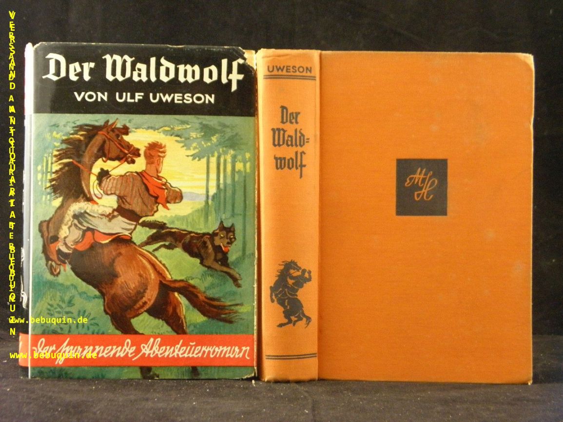 UWESON, Alf: Der Waldwolf. Abenteuer-Roman. Dresden (Moewig & Höffner), 1935. 266, 6 S. OLn mit OUmschl. Umschlag am Rand gering lädiert, gutes Ex. EA. Ulf Uweson, eigentlich Ludwig Hugo Nikolaus Huber, wurde 1895 geboren. Er war ein deutscher Journalist, Dramaturg und Schriftsteller.