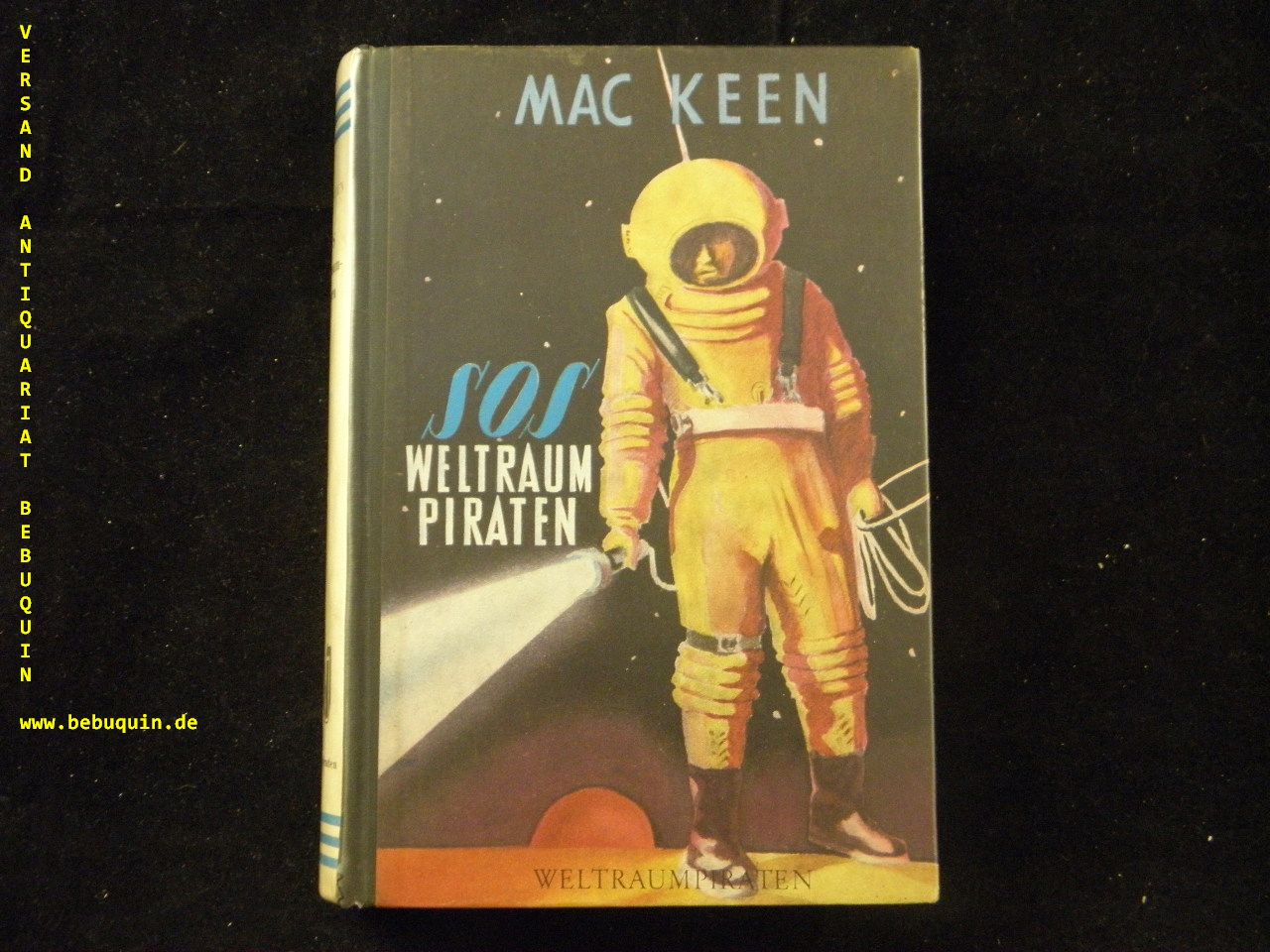 MAC KEEN: SOS – Weltraumpiraten. Frankfurt (Reihenbuch), 1953. 251 S. farb. ill. OHLn. gestempeltes Leihbuch, gutes Ex. = Weltraumpiraten 14. EA.