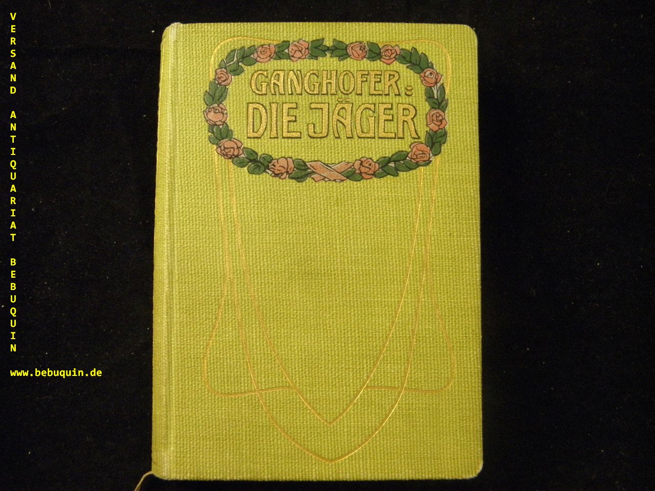 GANGHOFER, Ludwig: Die Jäger. Ein Dorfroman. Stuttgart (Bonz & Comp.), 1908. kl. 8°. 272 S. mit Buchschmuck von Hugo Engl. ill. OLn. gutes Ex. EA WG² 50.