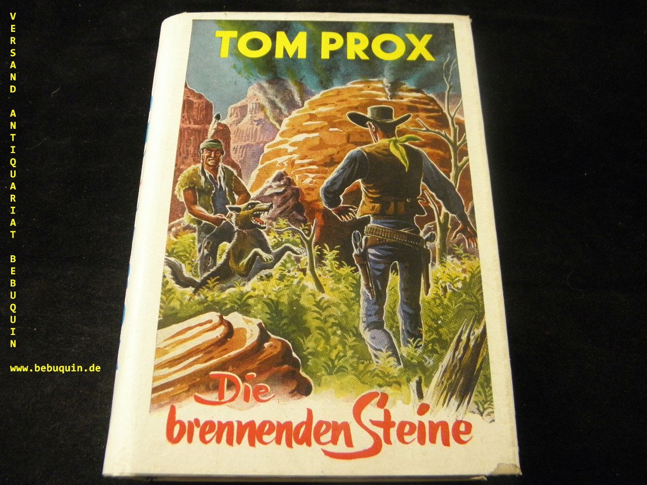 TOM PROX.– ROBBY, Alex: Die brennenden Steine. Bad Godesberg (Uta), 1957. 256 (1) S. farb. ill. OPb mit OUmschl. gestempeltes Leihbuch, schönes Ex. = Tom Prox abenteuerliche Erlebnisse, Bd. 139. 1. Aufl. dieser Ausgabe.