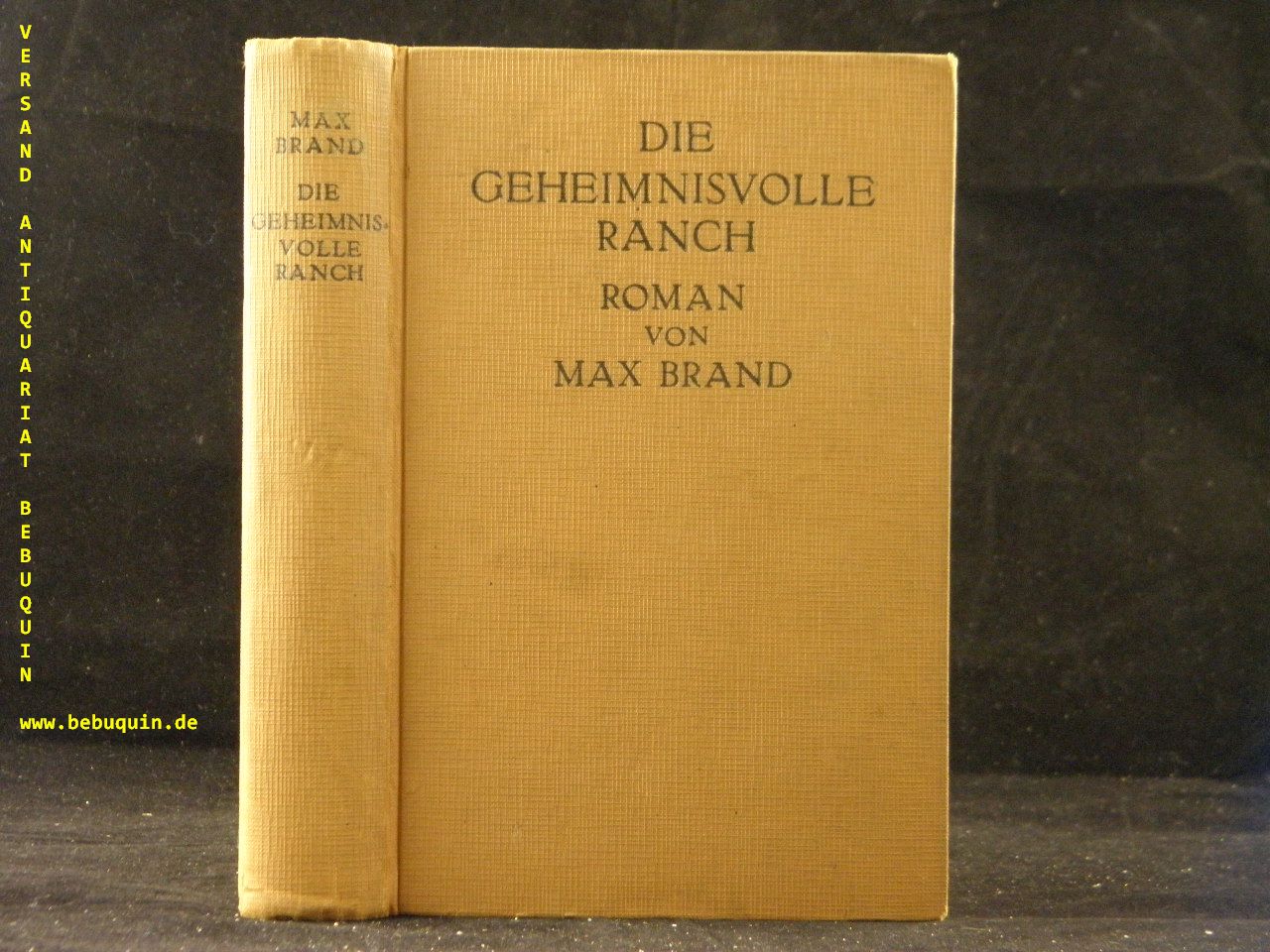 BRAND, Max: Die geheimnisvolle Ranch. D.v. Franz Eckstein. Berlin (Knaur), 1931. 289 (2) S. OLn. etwas gelockert. dt. EA. Schegk / Wimmer S49. [1.93].