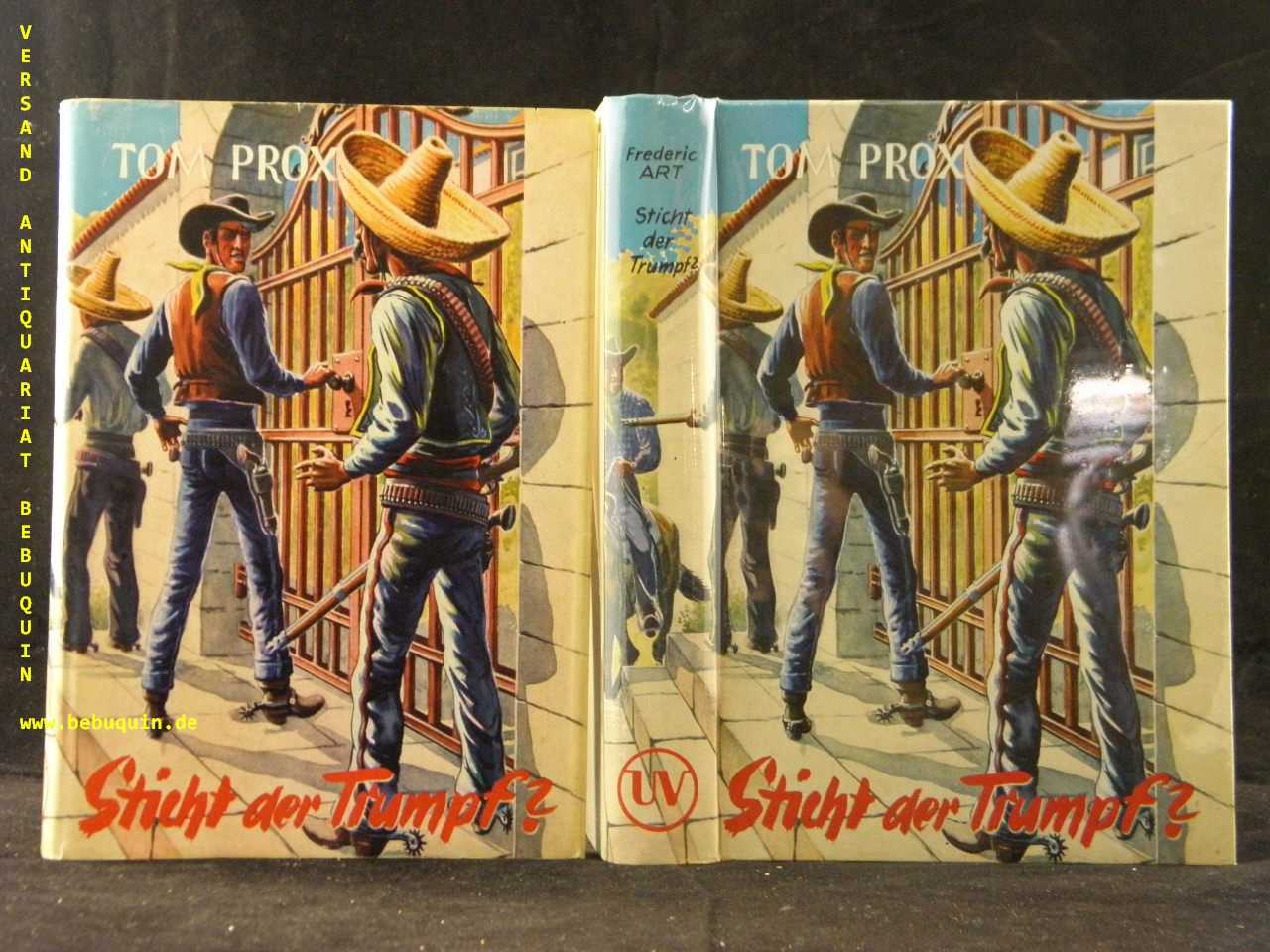 TOM PROX.– ART, Frederic: Sticht der Trumpf. Bad Godesberg (Uta), 1958. 238 S. farb. ill. OPb. mit OUmschl. feines Ex. = Tom Prox abenteuerliche Erlebnisse, Bd. 150. 1. Aufl. dieser Ausgabe.