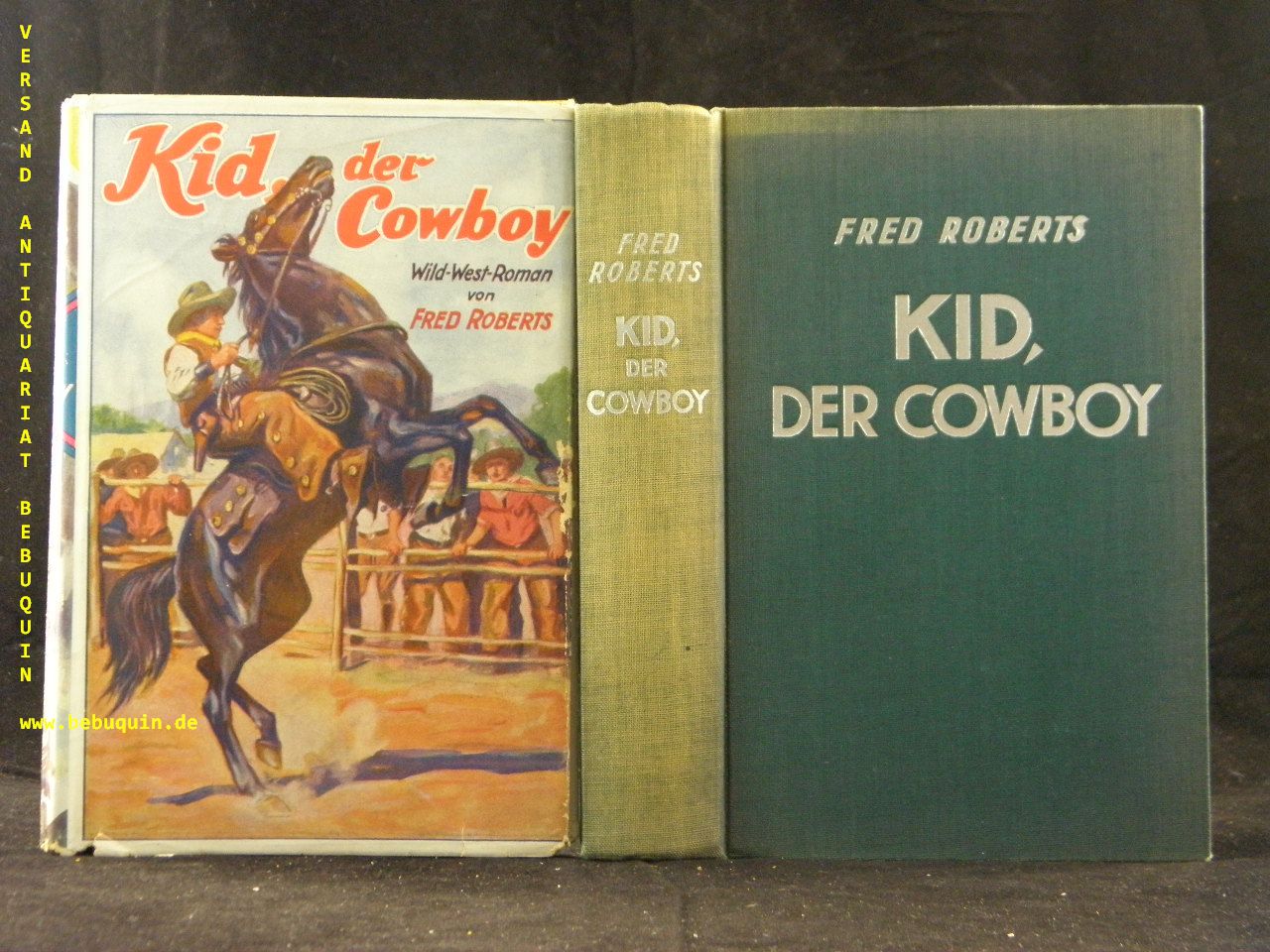 ROBERTS, Fred: Kid, der Cowboy. Abenteuerroman. Dresden (Münchmeyer), ca 1934. 319 (1) S. OLn mit Silberprägung und OUmschl. Umschlagkanten leicht bestoßen, Rücken geblichen, sonst gutes Ex. = Abenteuerromane aus aller Welt. EA.