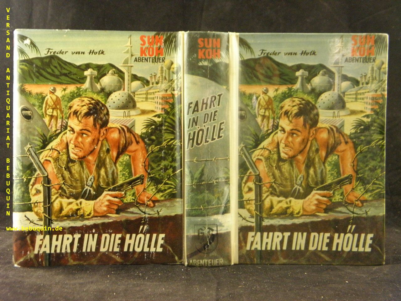 SUN KOH.– HOLK, Freder van: Fahrt in die Hölle. Münster (Borgsmüller), ca 1960. 241 (4) S. OLn mit OUmschl. leicht gelockert. 1. Aufl. dieser Ausgabe.