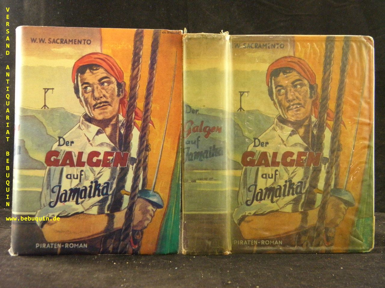 SACRAMENTO, W.W.: Der Galgen auf Jamaika. Piraten-Roman. Mönchen Gladbach (Linden), ca 1955. 300 S. farb. ill. OPb. mit OUmschl. gestempeltes Leihbuch. EA.