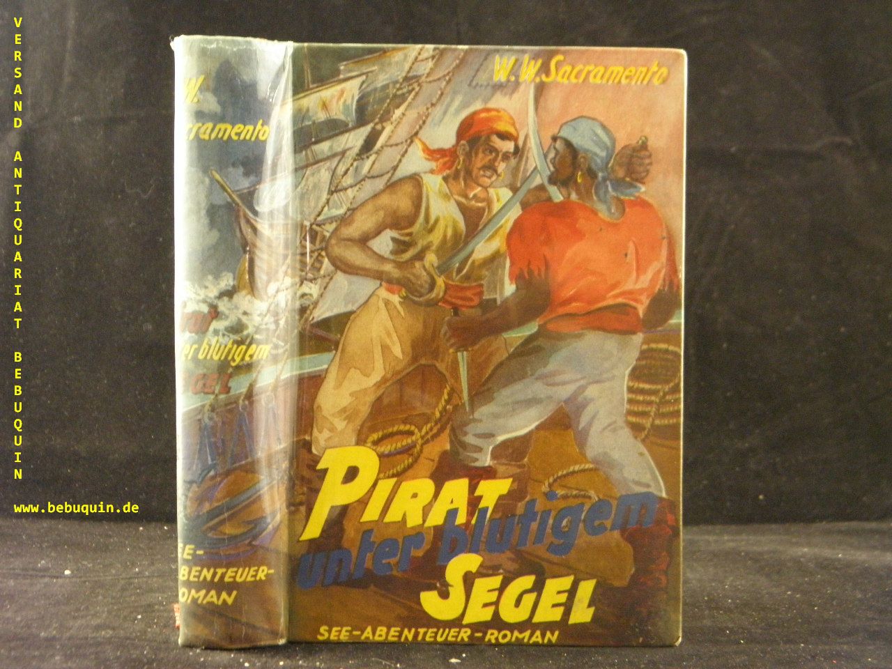 SACRAMENTO, W.W.: Pirat unter blutigem Segel. See-Abenteuer-Roman. Mönchen Gladbach (Linden), ca 1955. 261 (1) S. farb. ill. OPb. gutes Ex. EA.