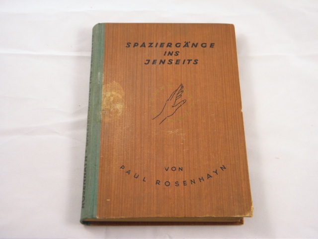 ROSENHAYN, Paul: Spaziergänge ins Jenseits. Leipzig (Keil), 1925. 120 S. ill. OHLn. Einband etwas angeschmutzt, innen mit Eckschaden ohne Textverlust. EA. Bloch 2649.