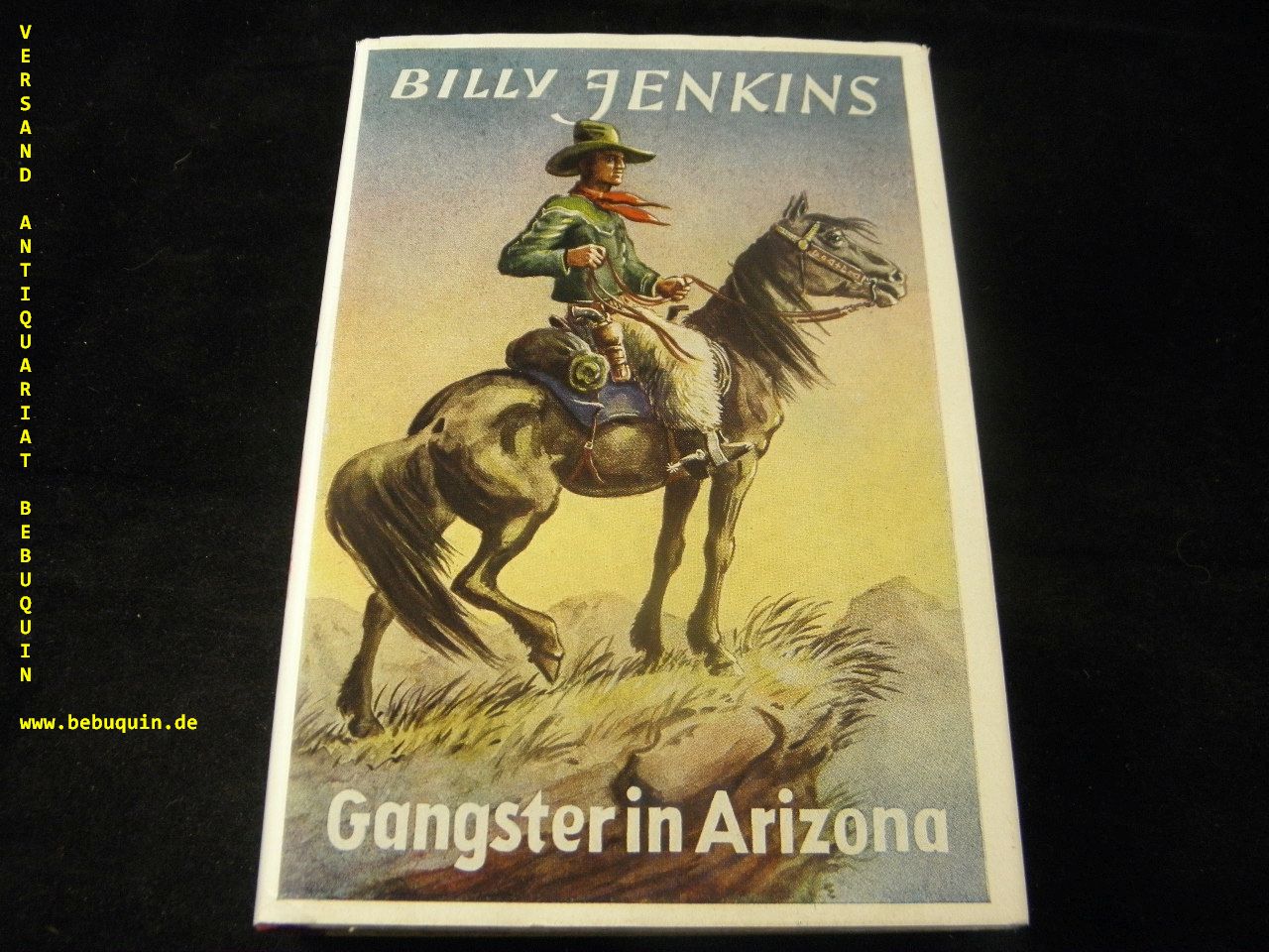 BILLY JENKINS.– MALY, Anton: Gangster in Arizona. Sinzig (Uta), 1951. 272 S. farb. ill. OHLn. mit OUmschl. schönes Ex. = Billy Jenkins Wild – West – Erzählungen, Bd. 27. 1. Aufl. dieser Ausgabe.
