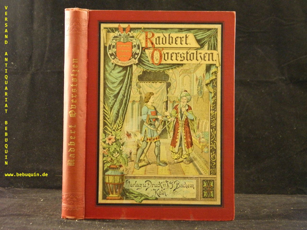MÜNCHGESANG, Robert: Radbert Overstolzen. Eine Erzählung aus der Zeit des deutschen Kaisers Otto des Großen. Köln (Bachem), (1897). 172 S. mit 4 Farbendruckbildern von Wilhelm Rohm. OLn mit mont. Farbbild. feines Ex. = Bachems neue illustrierte Jugendschriften, Bd. 7. EA. Klotz 4911/18.