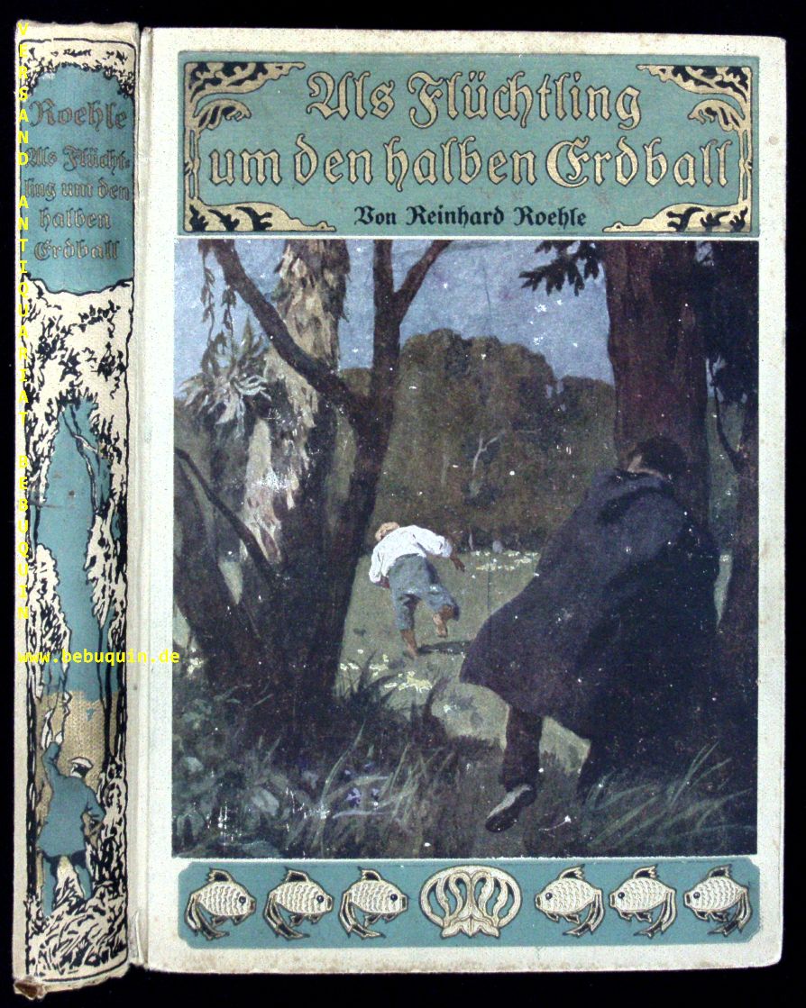 ROEHLE, Reinhard: Als Flüchtling um den halben Erdball. Die abenteuerlichen Erlebnisse des Prisenoffiziers S.M.S. „Emden“, Kapitänleutnant d.R. Julius Lauterbach. 9. Aufl. Stuttgart (Union), (1919). Gr. 8°. 260 S. mit 1 farb. Titelbild und 25 Textbildern von Franz Müller-Münster. farb. ill. OPb. Gelenke etwas gelockert und leicht angeplatzt.