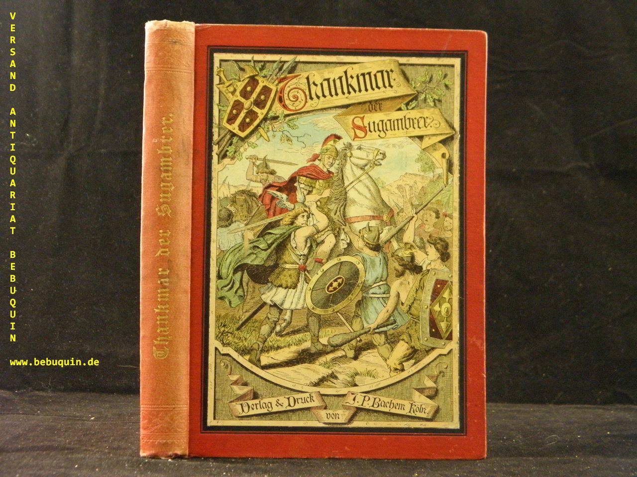 MÜNCHGESANG, Robert: Thankmar der Sugambrer. Eine Erzählung aus der Zeit Julius Cäsars. Köln (Bachem), (1895). 4 Bl., 176 S. mit 4 Farbendruckbildern von Wilhelm Rohm. OLn mit mont. Farbbild. kaum bestaubt. = Bachems neue illustrierte Jugendschriften, Bd. 2. EA. Klotz 4911/34.