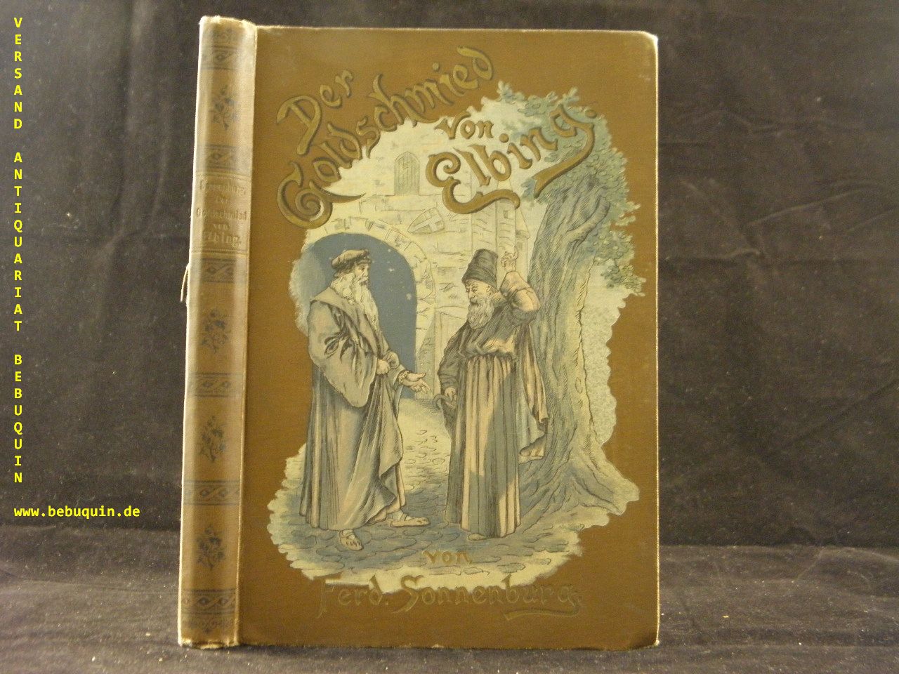 SONNENBURG, Ferdinand: Der Goldschmidt von Elbing. Erzählung aus der Zeit des deutschen Ordens. Berlin (Meidinger), (1893). Gr. 8°. 196 (2) S. mit 5 Bildtafeln von Martin Raenike. farb. ill. OLn. WaV, Schnitt mit kleinem Fleck, gutes Ex. 1. Aufl. dieser Ausgabe. Klotz 6885/11.