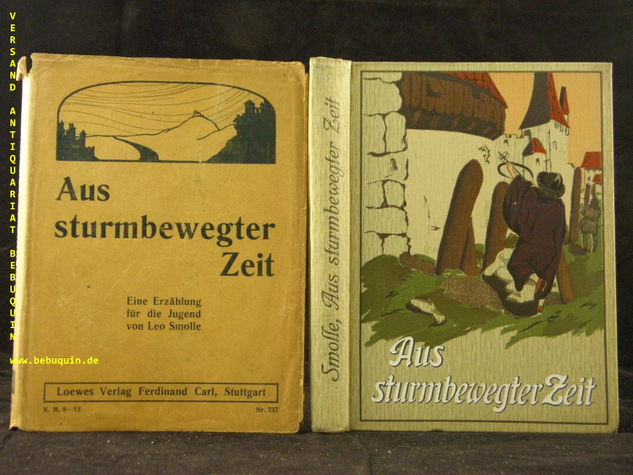 SMOLLE, Leo: Aus sturmbewegter Zeit. Geschichtliche Erzählung für die Jugend. Stuttgart (Loewe), (1911). 162 (2) S. mit 8 Bildtafeln von K. Unkauf. farb. ill. OLn mit OUmschl. Umschlag gering lädiert, gutes Ex. EA Klotz 6873/35.