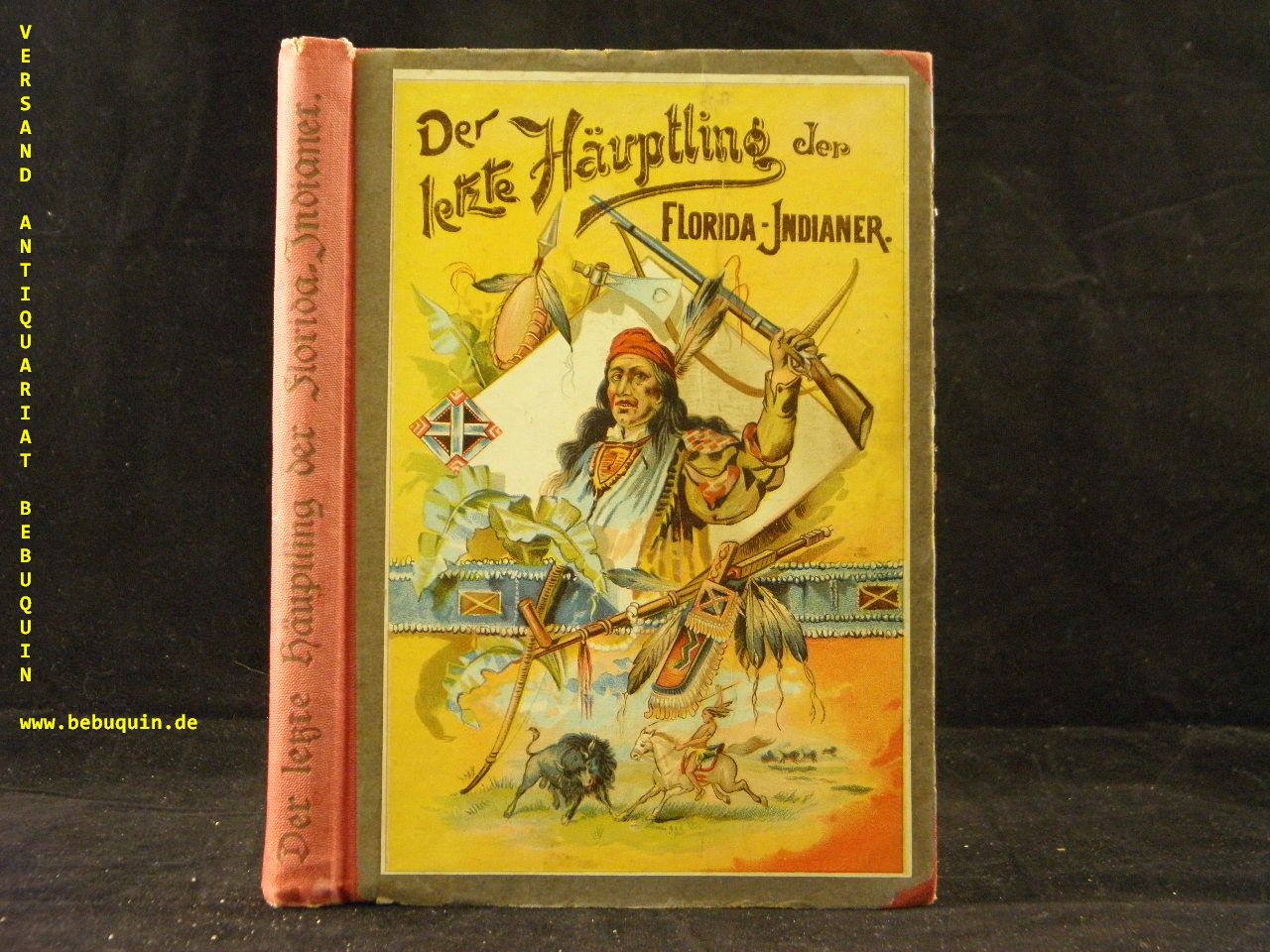 GRUNDMANN, Julius: Der letzte Häuptling der Florida-Indianer. Eine Erzählung aus den Kämpfen der Weißen mit den SEminolen. 2. Aufl. Fürth (Löwensohn), ca 1900. 120 S. + 5 Farbendrucktafeln. ill. OHLn. mit mont. Farbbild. NaV, gutes Ex. selten. Klotz 2150/6.