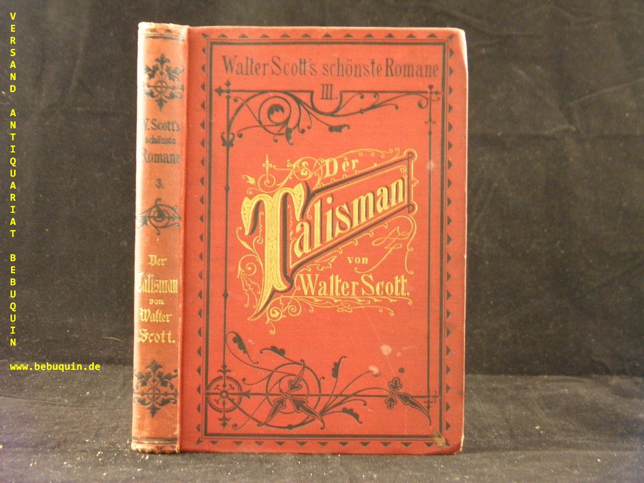SCOTT, Walter: Talisman. D.v. Robert König. 2. Aufl. Bielefeld (V&K), 1881. 270(2) S. mit 8 Tonbildern von P. Grotjohann. reich verziertes OLn. innen leicht gebräunt. = Walter Scott’s schönste Romane III.