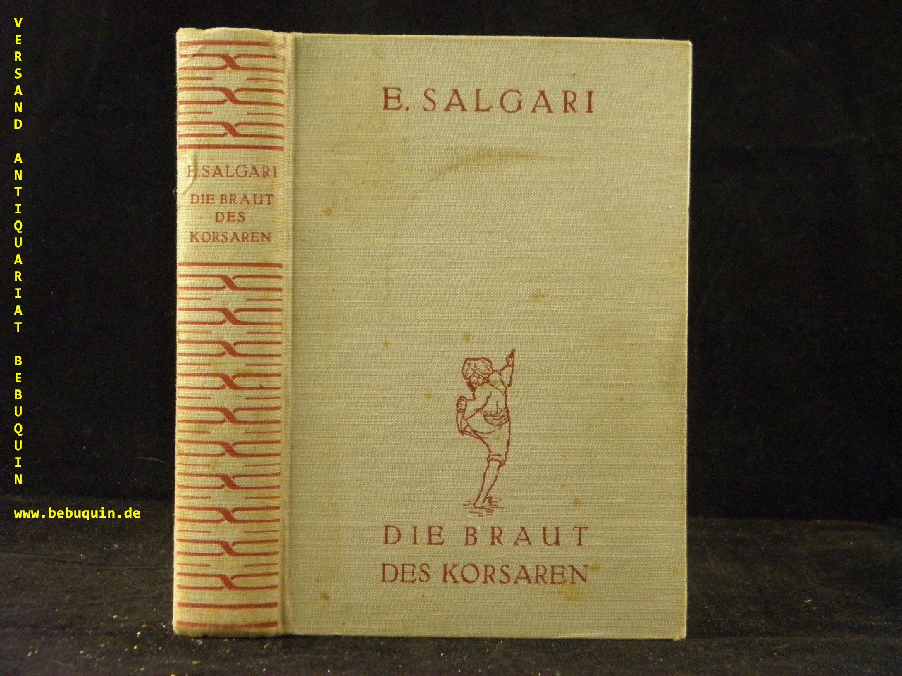 SALGARI, Emilio: Die Braut des Korsaren. Abenteuerroman. D.v. K. Heinz Hellwig. Berlin (Phönix), 1932. 299 (3) S. mit 1 Titelbild. graues ill. OLn. Einband leicht angeschmutzt. dt. EA. Klotz 6118/3.