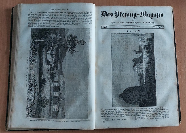 DAS PFENNIG-MAGAZIN.– der Gesellschaft zur Verbreitung gemeinnütziger Kenntnisse. 9. Bd. Nr. 405 – 456. Leipzig (Brockhaus), 1841. 4°. VIII, 416 S. mit zahlr. Abb. Pb der Zeit. Rücken abgerieben, vereinzelt stockfleckig und gelockert.