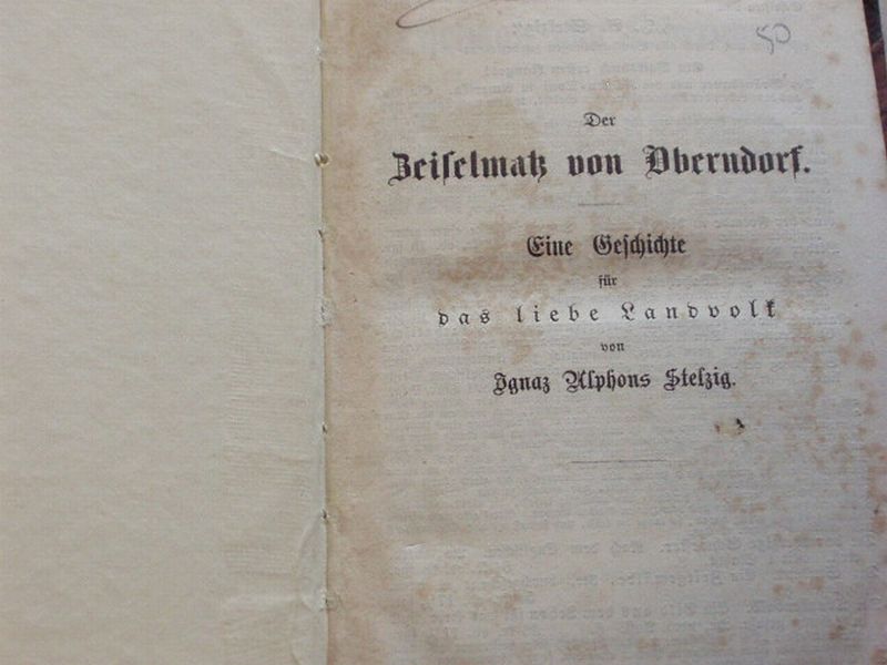 STELZIG, Ignaz Alfons: Der Zeiselmatz von Oberndorf oder: So kommmt man von Stroh auf die Federn. Eine Geschichte für das liebe Landvolk. Regensburg (Manz), 1859. 300 S. HLn ca 1900. Papier etwas stockfleckig. EA DLL 2842.