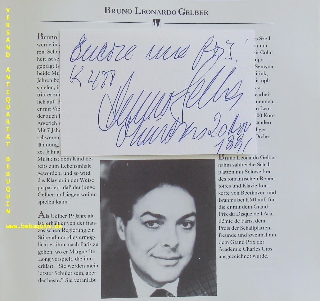 GELBER, Bruno Leonardo (Pianist): eigenhändig signierte und datierte Autogrammkarte. München (Philharmonie), 20.11.1991. 8 x 12,5 cm. Karteikarte in Programmheft. 16 S. mit zahlr. Abb. OKart. tadellos = Winderstein Konzerte. Bruno Leonardo Gelber (* 19. März 1941 in Buenos Aires) ist ein argentinischer Pianist. (Wikipedia)