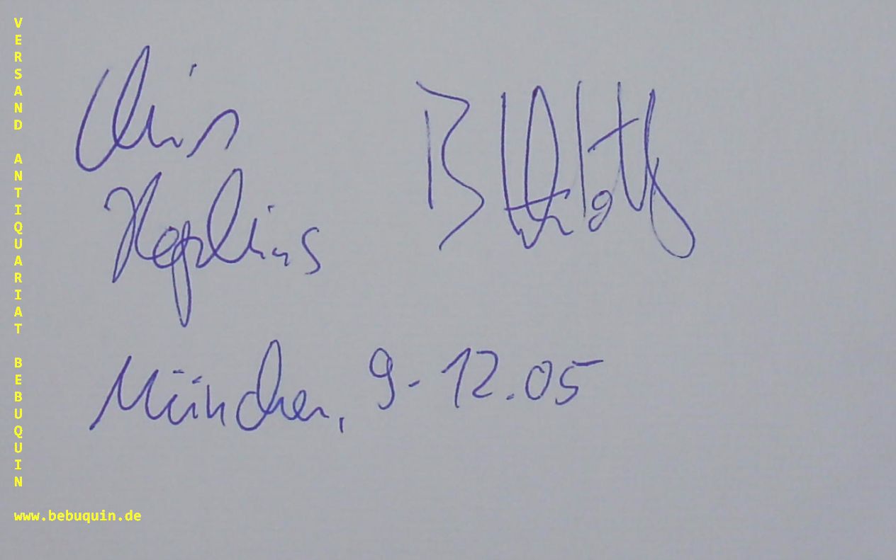 JAZZ.– HOPKINS, Chris (Saxophonist) + LHOTZKY, Bernd (Pianist): eigenhändig von beiden signierte und datierte Autogrammkarte. München, 9.12.2005. 8 x 12,5 cm. Karteikarte. Christian Peter „Chris“ Hopkins (* 18. April 1972 in Princeton) ist ein amerikanischer Jazzmusiker (Piano, auch Altsaxophon), der sich dem traditionellen Jazz verschrieben hat. Bernd Lhotzky (* 11. Dezember 1970 in Tegernsee) ist ein deutscher Jazzpianist und Komponist. (Wikipedia)