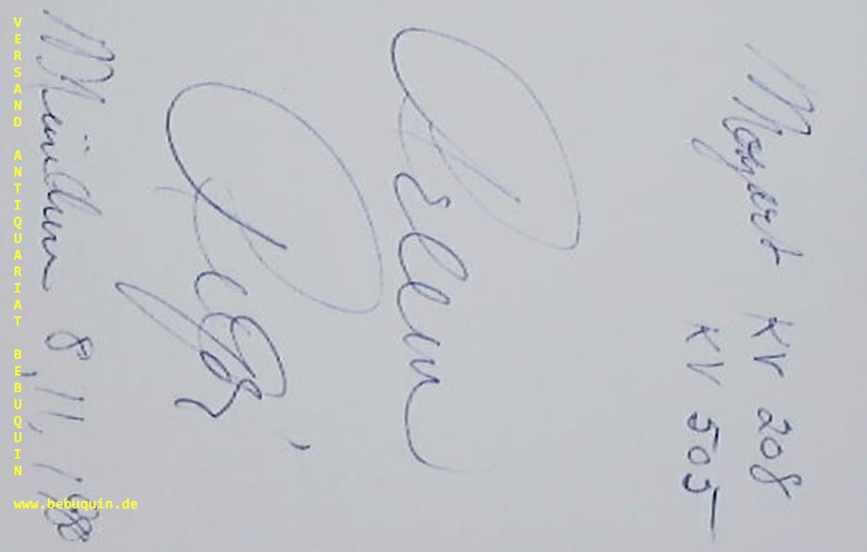 AUGER, eigenhändig signierte und datierte Autogrammkarte: Mozart KV 208 KV 505.