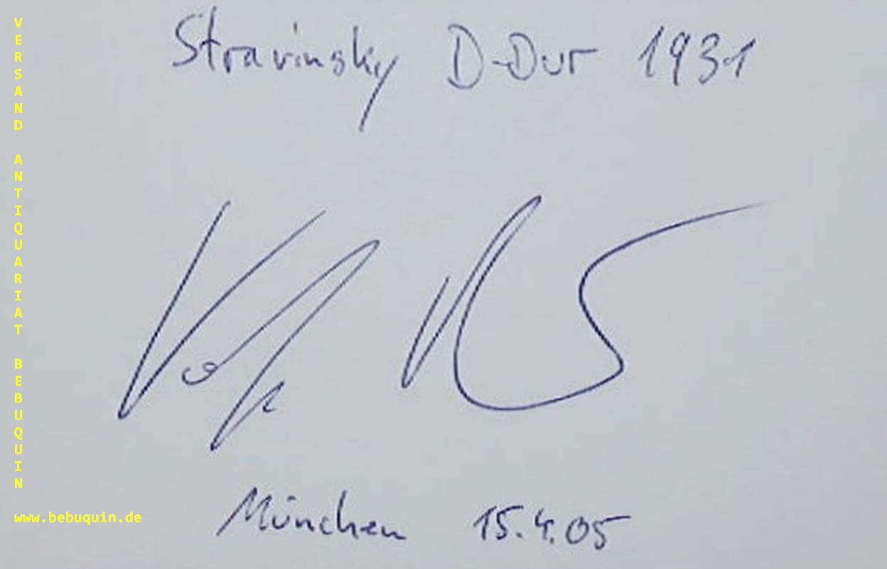 BLACHER, Kolja (Violinist): eigenhändig signierte Autogrammkarte: Stravinsky D-Dur 1931. München (Philharmonie), 15.4.2005. 8 x 12,5 cm. Kartenkarte. Kolja Blacher (* 1963 in Berlin) ist ein deutscher Violinist. (Wikipedia)