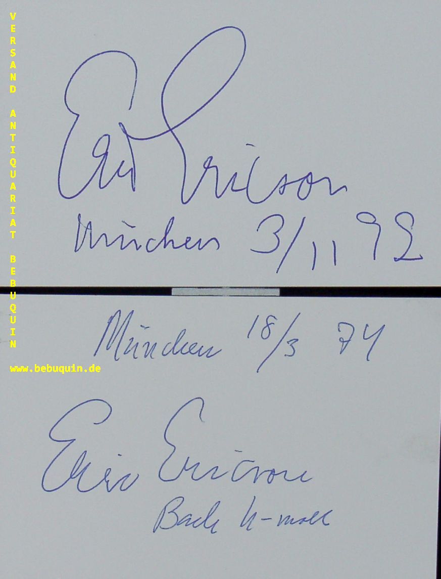 ERICSON, Eric (Dirigent): 2 eigenhändig signierte und datierte Autogrammkarten. München (Herkulessaal), 1974 + 1999. 8 x 12,5 cm. 2 Karteikartne. Eric Ericson (* 26. Oktober 1918 in Borås; † 16. Februar 2013 in Stockholm) war ein schwedischer Chorleiter und Dirigent. (Wikipedia)
