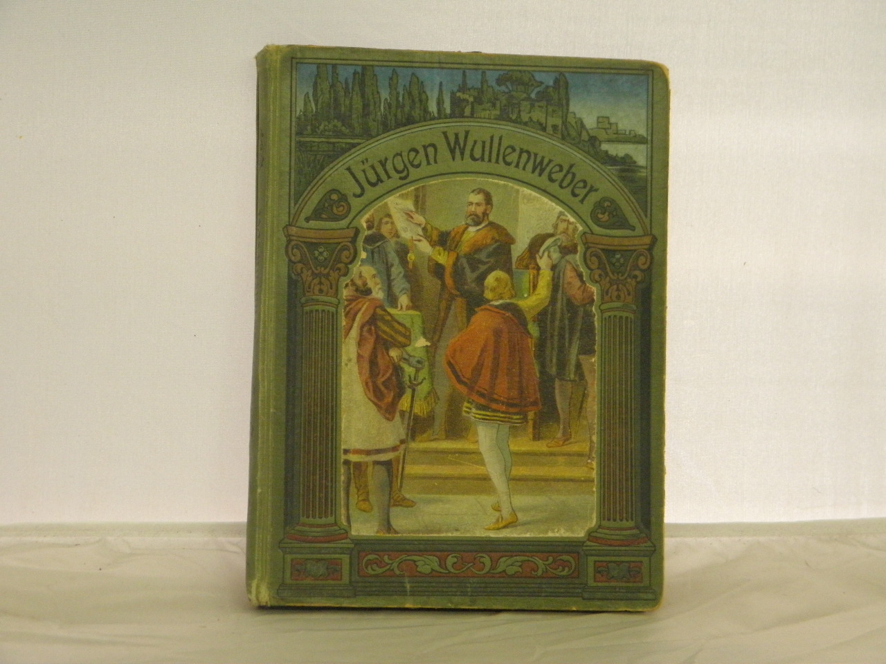 SCIPIO, Rudolf: Jürgen Wullenweber. Eine Erzählung aus den Tagen der Hansa. Berlin (Schreiter), ca 1900. Gr. 8°. 139 (1) S. mit 4 prachtvollen Farbdruckbildern nach Aquarellen von G. Bartsch. ill. OHLn mit mont. Farbbild. Kanten berieben, Gelenke gelockert. vergl. Klotz 6705/37.