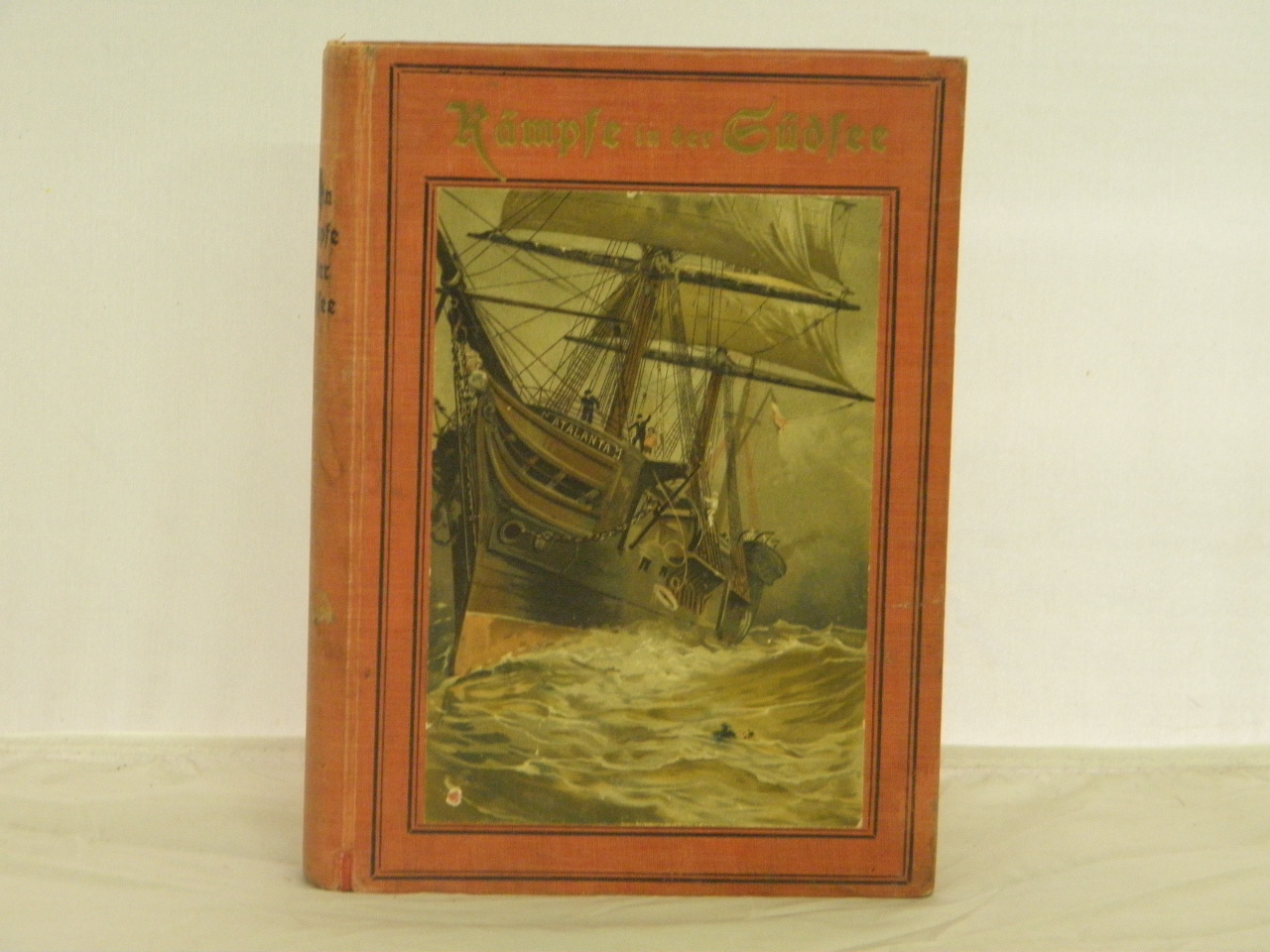 RONIN, Max: Kämpfe in der Südsee. Abenteuer und Erlebnisse zu Wasser und zu Land. Stuttgart (Gundert), (1900). 415 (1) S. mit 1 Farbendruckbild, 8 Vollbildern und vielen Holzschnitten. OLn mit mont. Farbbild. Rückdeckel angeschmutzt, WaV. seltene EA nicht bei Klotz.