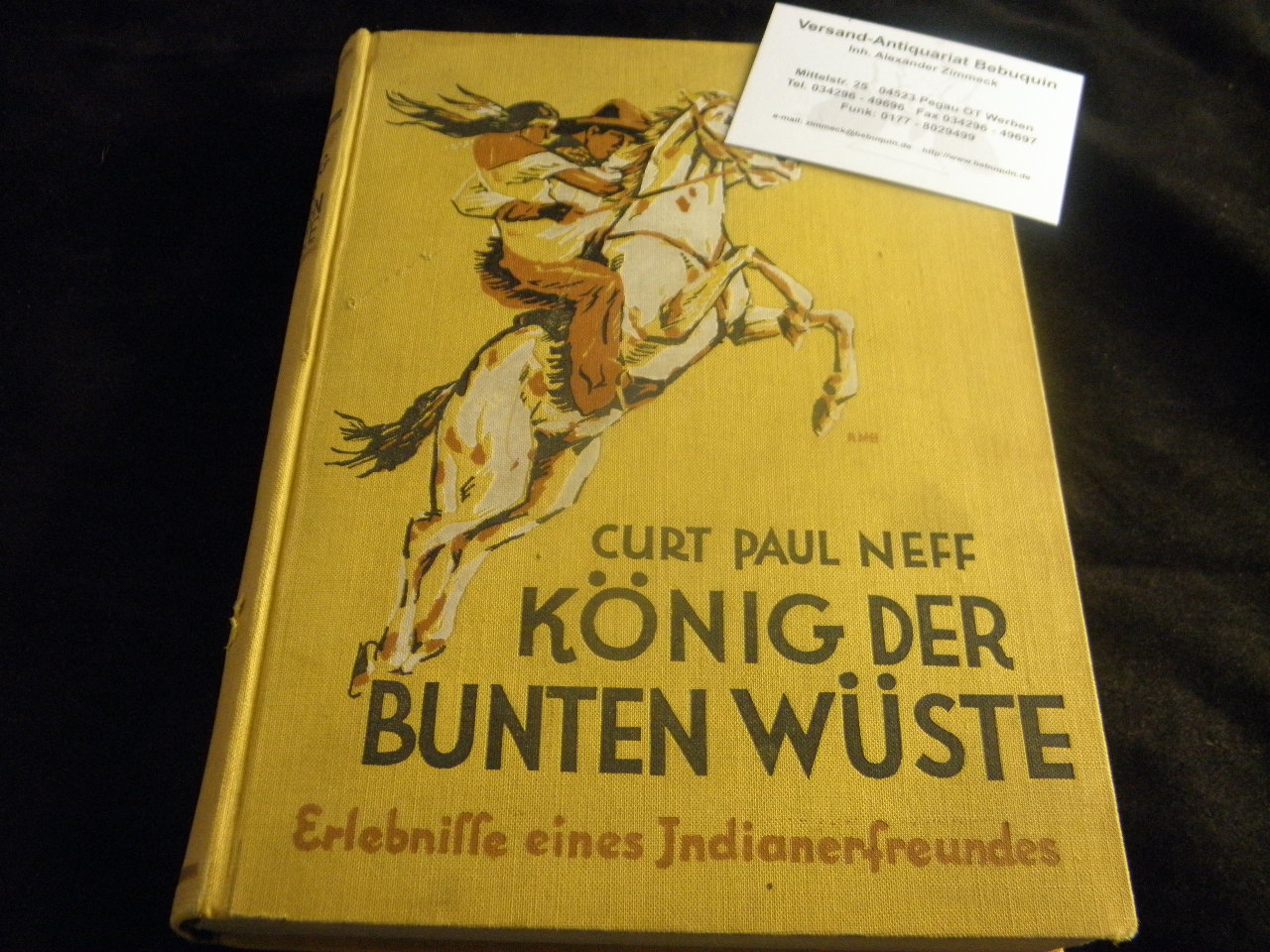 NEFF, Curt Paul: König der Bunten Wüste. Erlebnisse eines Indianerfreundes. Leipzig (Buchwerkstätten), 1927. Gr. 8°. 3 Bl., 240 S. mit 14 Illustrationen. farb. ill. OLn. Rüclkdeckel leicht berieben, sonst gut erhalten. EA Klotz 4986/1.