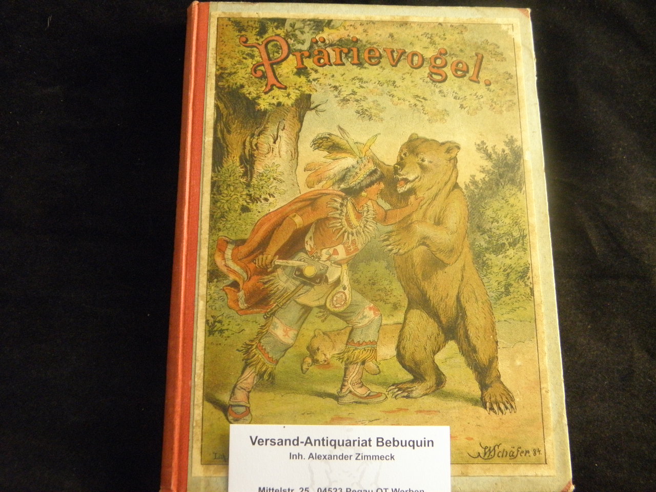 MURRAY, Charles: Der Prairievogel. Für die Jugend bearb. von H. Höcker. Berlin (Neufeld), ca 1890. 146 (2) S. + 4 (von 5) Farbendruckbildern nach Aquarellen von W. Schäfer. farb. ill. OHLn.. etwas gelockert, Vorsätze grbräunt. 1. Auflage dieser Ausgabe. Vergl. Klotz 4932/4.