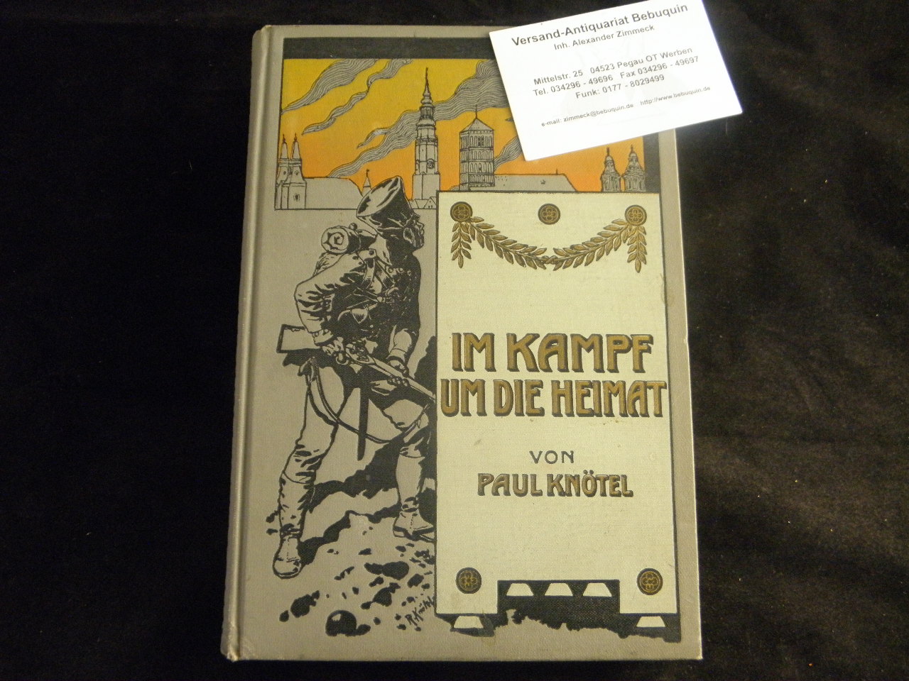 OSTGEBIETE. KNÖTEL, Paul: Im Kampf um die Heimat. Eine Geschichte aus schweren Tagen. 2. Aufl. Kattowitz (Phönix), (1904). Gr. 8°. 171 (5) S. mit farb. Titelbild und zahlr. Bildtafeln von Richard Knötel sowie mit gestalteten Vorsätzen. farb. ill. OLn. Ex libris, sehr feines Ex. Klotz 3509/3.