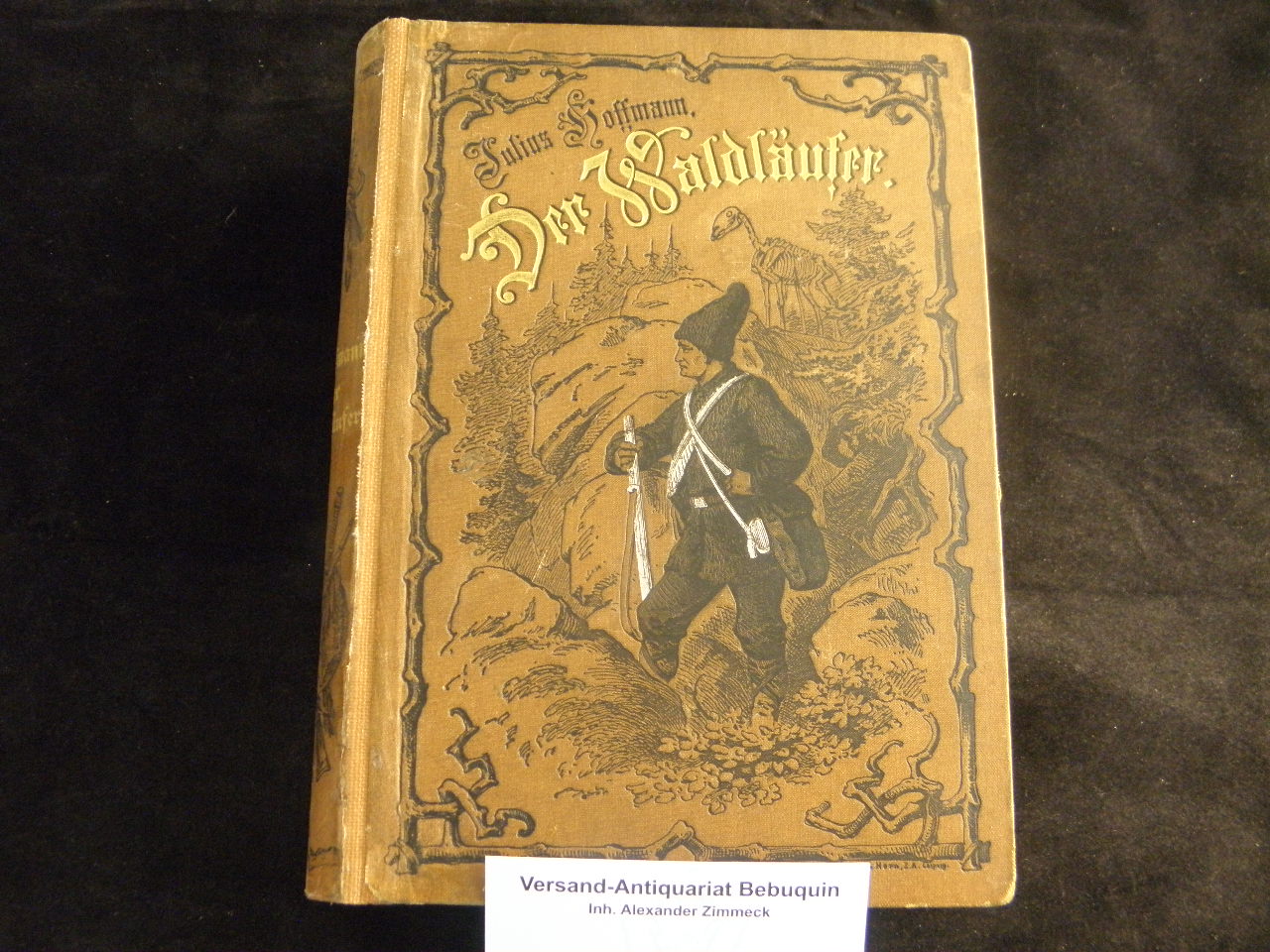 FERRY, Gabriel: Der Waldläufer. Erzählungen aus dem amerikanischen Waldleben. Bearb. von Julius Hoffmann. 10. Aufl. Berlin (Trewendt), (1883). 497 (4) S. + 12 Chromolithographien von F. Koska gezeichnet von W. Schäfer. ill. OLn. alter Rücken neu aufgezogen, Vorsätze erneuert, innen kaum fingerspurig. Klotz 1451/46.