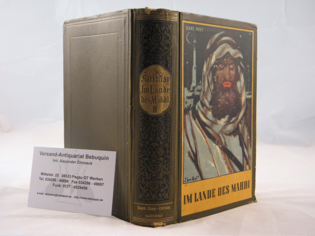 MAY, Karl: Im Lande des Mahdi. II. Band. Reiseerzählung. 112.– 130. Tsd. Radebeul (Karl May), (1949). 587 (1) S. farb. ill. OHLn. (DB 149). Rückenkanten teils berieben, NaV. = Gesammelte Werke, Bd. 17. Hermesmeier GW17 NK. Sehr seltene nach 16.6.1949 vom Karl May Verlag neu aufgezogene Einbandvariante.
