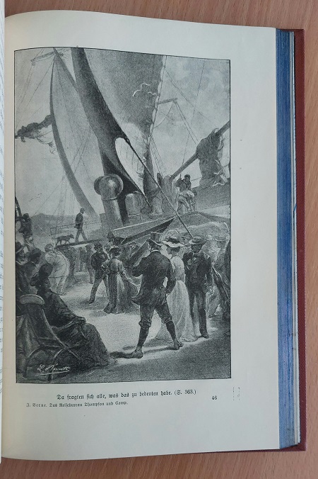 VERNE, Julius: Das Reisebureau Thompson und Comp. 2 Teile in 1 Bd. Wien (Hartleben), 1909. Gr. 8°. 487 S. mit 61 Illustrationen. OLn. mit reicher Gold- und Schwarzprägung sowie Farbschnitt. fast neuwertig. = Bekannte und unbekannte Welten, Bd. 91-92. dt. EA. Prachtausgabe. Fromm 26376.