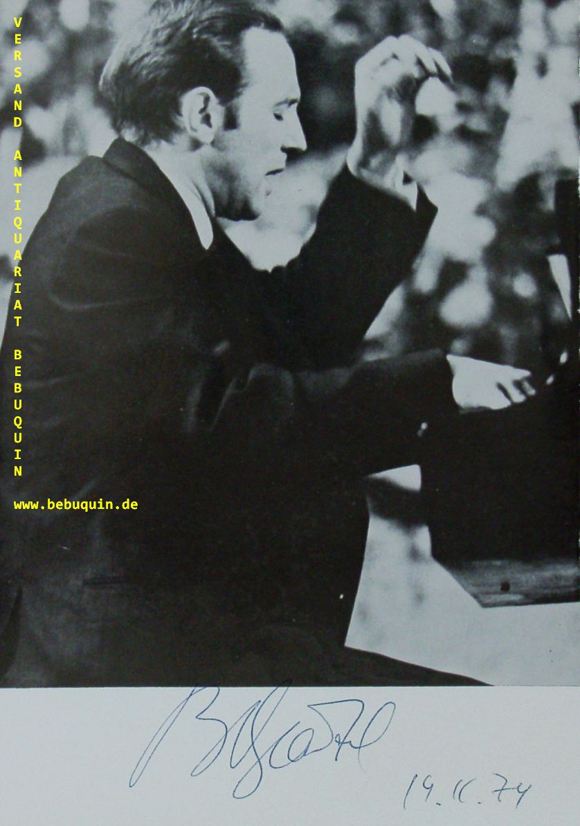 KRAINEW, Wladimir (Pianist): eigenhändig signiertes und datiertes Portrait. München, 19.11.1974. 21 x 15 cm. 2 Bl. Wladimir Wsewolodowitsch Krainew (* 1. April 1944 in Krasnojarsk; † 29. April 2011 in Hannover) war ein russischer Pianist und Hochschullehrer. (Wikipedia)