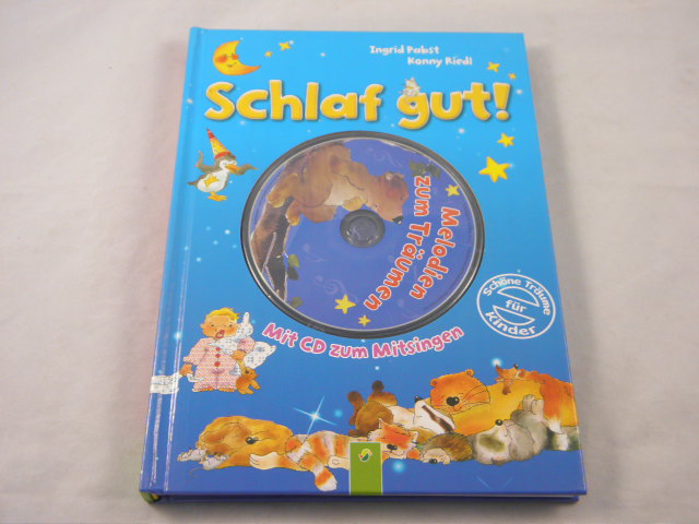 PABST, Ingrid + RIEDL, Konny: Schlaf gut! Köln (Schwager & Steinlein), o.J. 4°. 125 S. mit zahlr. farb. Illustrationen und der CD zum Mitsingen im Vorderdeckel. farb. ill. OPb.