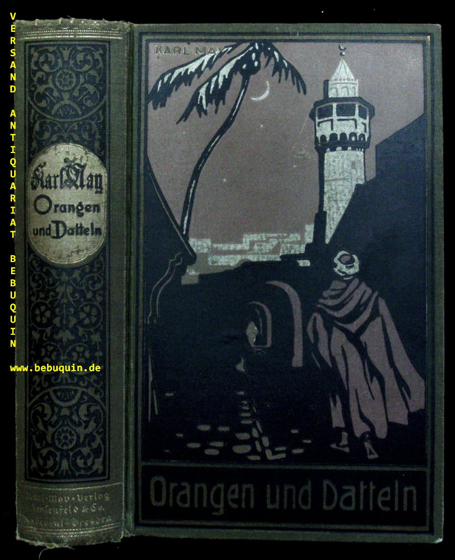MAY, Karl: Orangen und Datteln. Reiseerzählung. 101.– 106. Tsd. Radebeul (Karl May), (1926). 665 (2) S. farb. ill. OLn. Rückdeckel leicht angeschmutzt, NaV, insgesamt gut erhalten. = Gesammelte Werke, Bd. 10. Hermesmeier / Schmatz GW10.15.