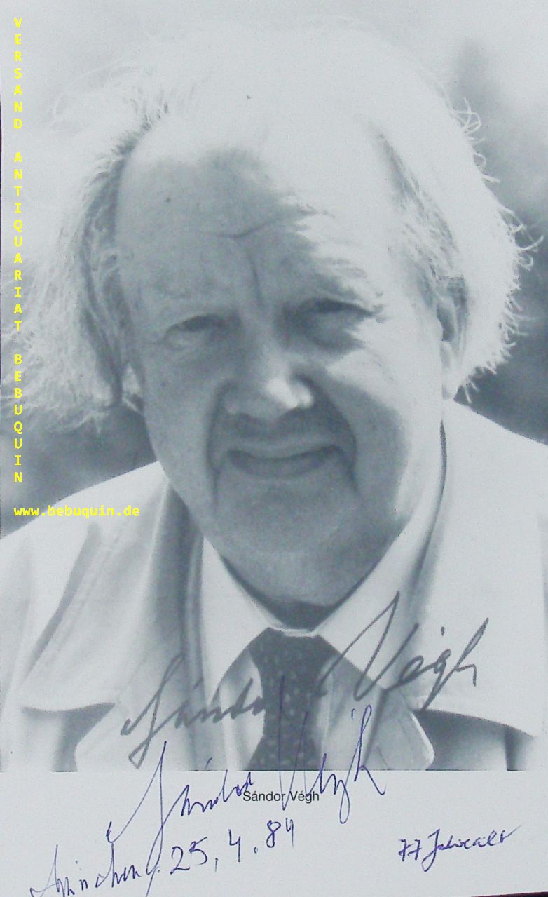 VEGH, Sandor (Dirigent): eigenhändig signierter Programmausschnitt mit Portrait. München (Philharmonie), 25.4.1984. 19 x 12 cm. 1 Bl. Sándor Végh (* 17. Mai 1912 im siebenbürgischen Klausenburg (Kolozsvár), Österreichisch-Ungarische Monarchie; † 7. Januar 1997 in Salzburg) war ein international tätiger Dirigent und Violinist ungarischer Abstammung. (Wikipedia)