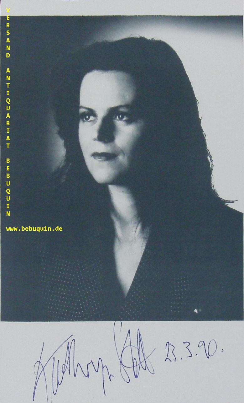 STATT, Kathryn (Pianist): eigenhändig signierte und datierte Portraitseite. München (Herkulessaal), 23.3.1990. 20 x12 cm. 1 Bl. Kathryn Stott (born 10 December 1958) is an English classical pianist who performs as a concerto soloist, recitalist and chamber musician. Her specialities include the English and French classical repertoire, contemporary classical music and the tango. She teaches at the Royal Academy of Music and Chetham’s School of Music and has organised several music festivals and concert series. (Wikipedia)