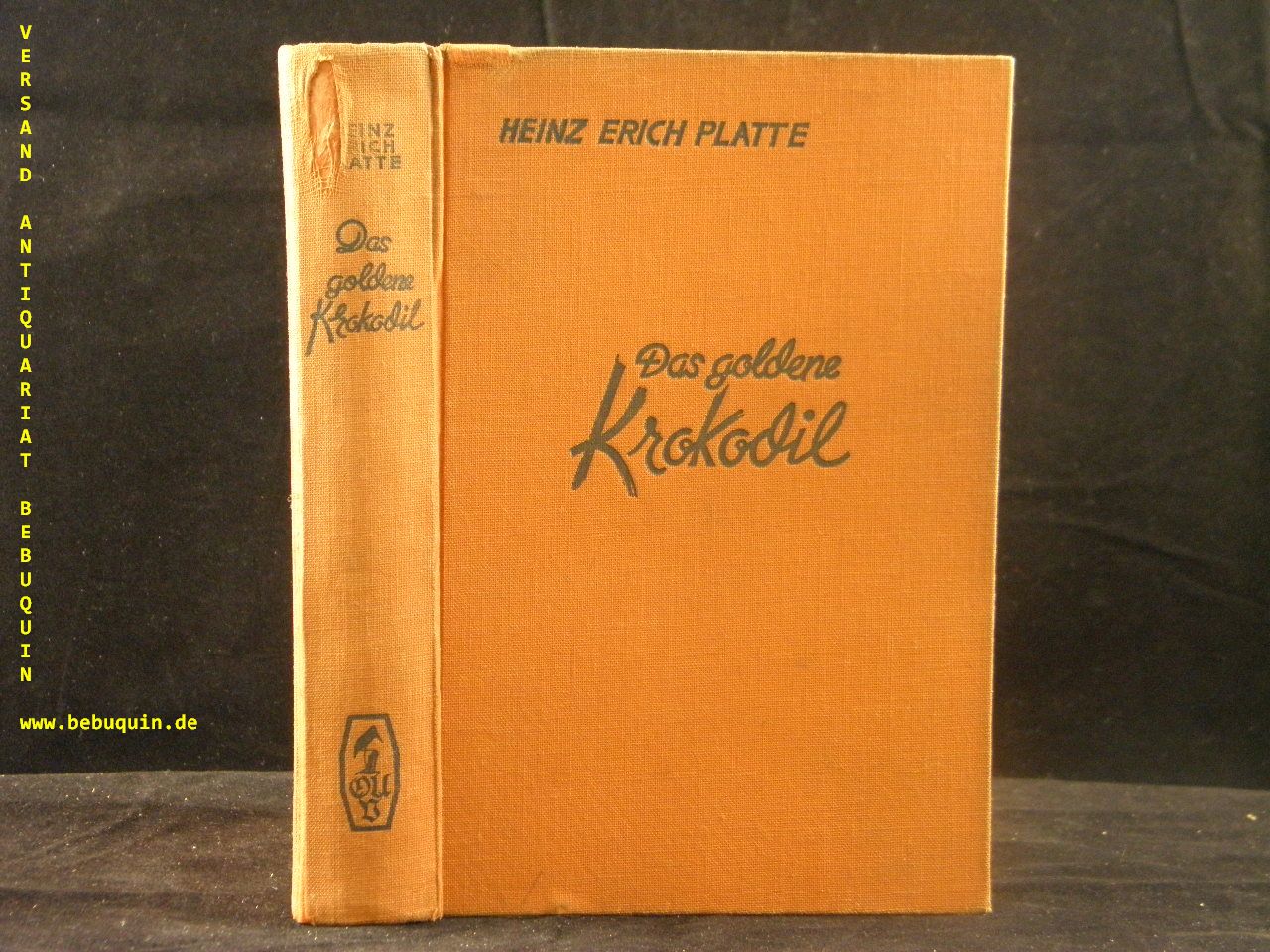 PLATTE, Heinz Erich: Das goldene Krokodil. Abenteuerroman. Berlin (Uhlmann), 1936. 253 (3) S. OLn. obere Kante wenig bestoßen, sonst tadellos. = Uhlmann – Bücher. EA.