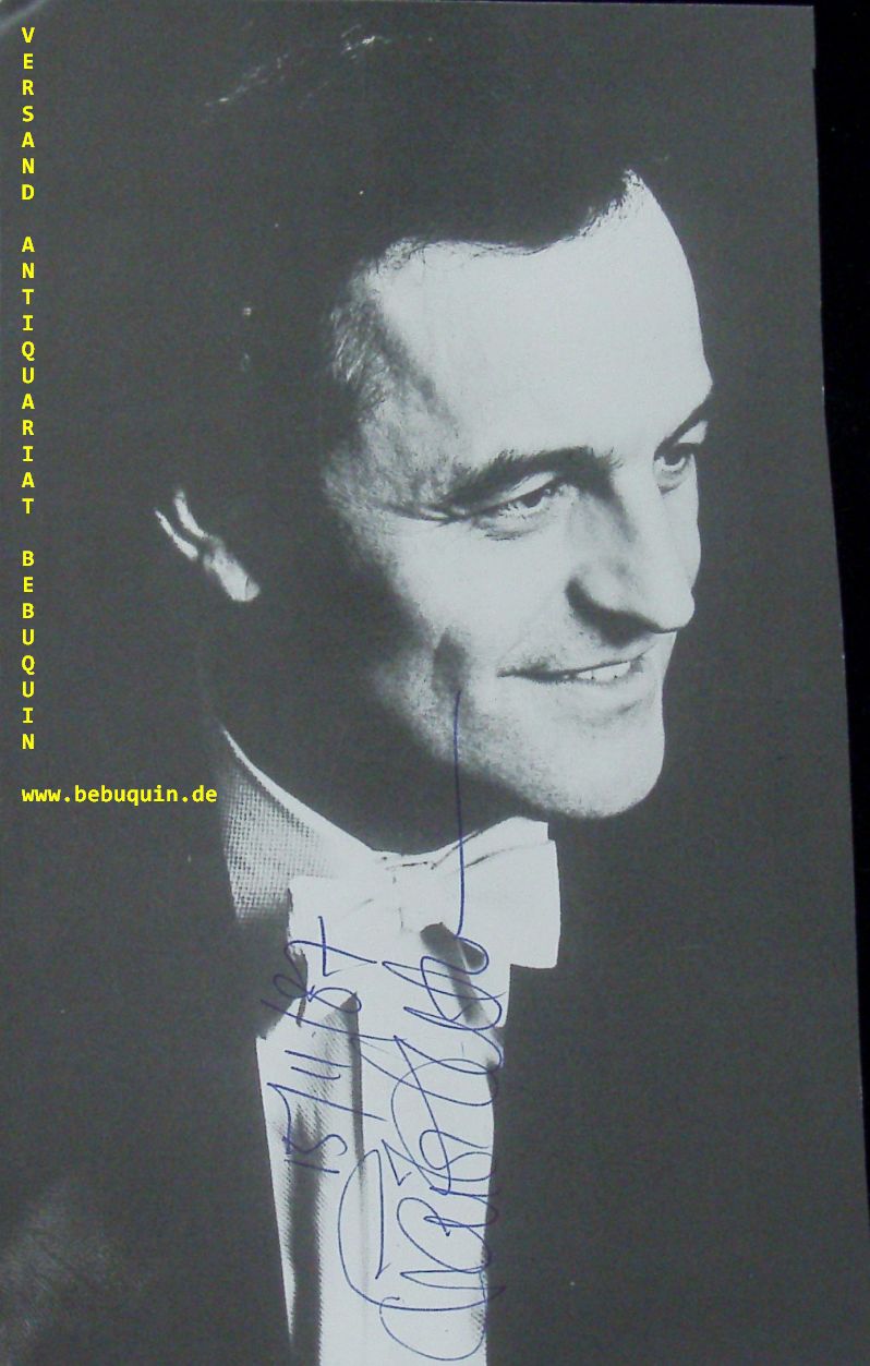 DUTOIT, Charles (Dirigent): eigenhändig signierte und datierte Portraitseite. München (Philharmonie), 15.11.1987. 21 x 13 cm. 1 Bl. Charles Édouard Dutoit (* 7. Oktober 1936 in Lausanne) ist ein Schweizer Dirigent mit Wohnsitz in Kanada. (Wikipedia)