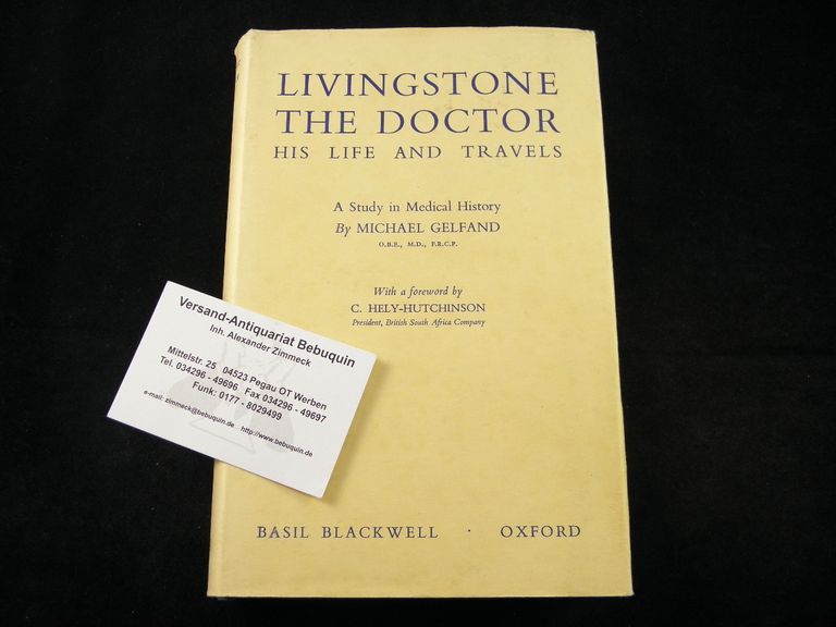MEDIZIN.– GELFAND, Michael: Livingstone the Doctor. His Life and Travels. A Study in Medical History. Oxford (Blackwell), 1957. XVII, 333 S. + zahlr. Bildtafeln + 1 Faltkarte im Anhang. OLn. mit OUmschl. feines Ex. EA.